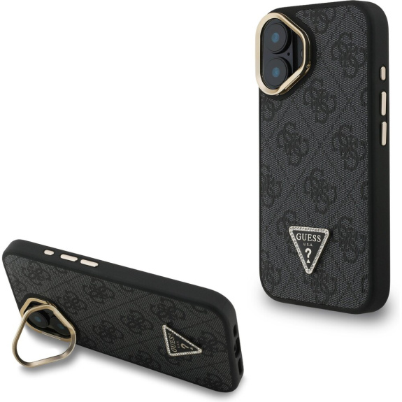 Chcesz dostarczyć towar do Polski? Obejrzyj Etui Guess 4G Strass Triangle Logo z podstawką i MagSafe do iPhone 16 - szary na stronie AppleKing.pl.